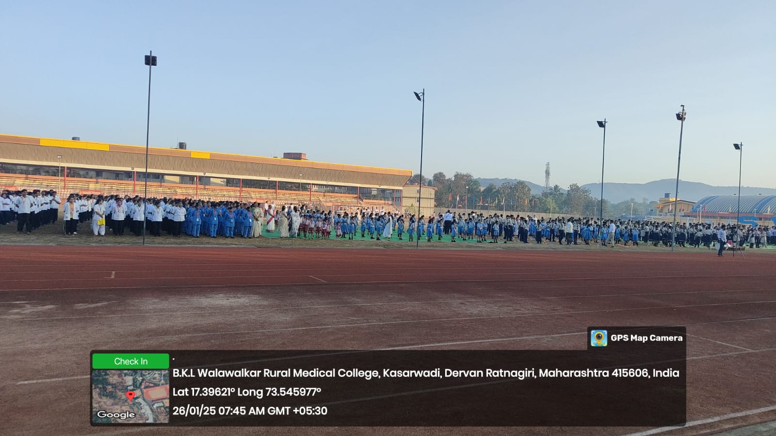 The 76th Republic Day of India was celebrated with great enthusiasm at the sports complex of Shri Vitthalrao Joshi Charities Trust. The flag was hoisted by the chief guest, renowned Dentist Dr. Sandesh Mayekar – Cosmetic and Aesthetic. Dentist. Chartered Accountant Swati Mayekar and famous gynecologist from America, Dr. Anil Nerurkar, were present as the guest of honour. On this occasion, the trustees of the organization, Mr. Ashokrao Joshi and Mr. Vikasrao Walawalkar, professors, teachers, employees from medical and sports departments, as well as students, parents, and people from the nearby area, were present in large numbers.