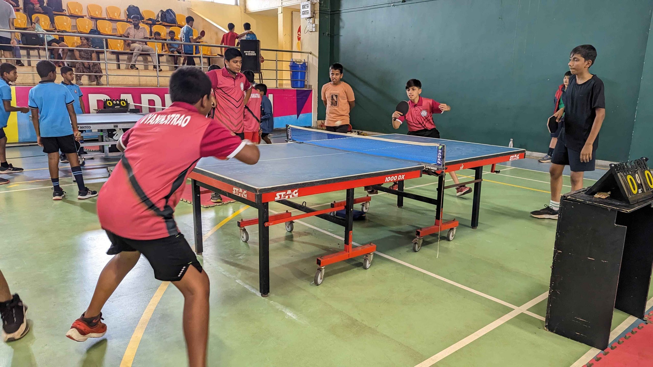 The Divisional Level School Table Tennis Tournament was organized at the SVJCT Sports Complex from October 07 to 08, 2025. A total of 384 players participated in this tournament, including 240 players from 48 teams and 144 players for selection trials, coming from Satara, Sangli, Sangli Municipal Corporation (MMC), Kolhapur, Kolhapur MMC, Ichalkaranji MMC, Sindhudurg, and Ratnagiri. Boys and girls in the under-14, under-17, and under-19 age groups from various schools in the division enthusiastically participated in this competition and gave an excellent display of their skills.