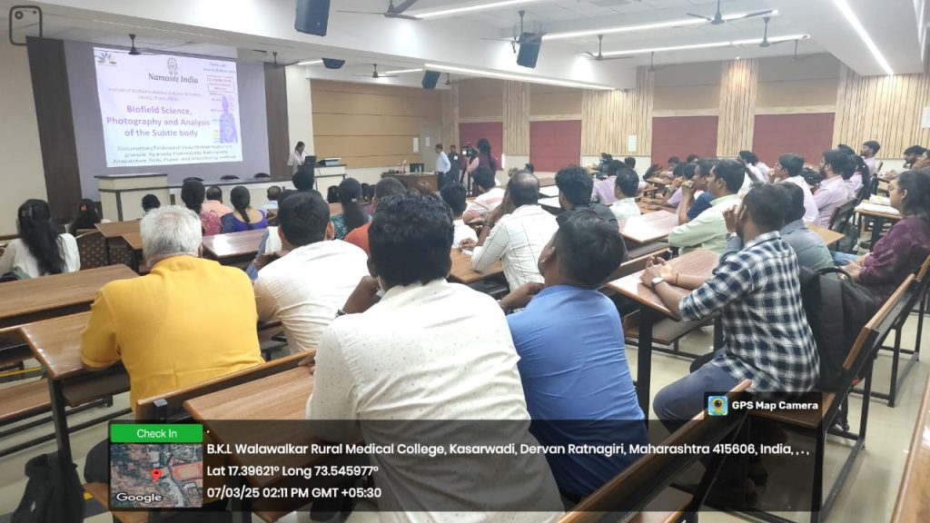 During the lecture, Dr. Deo introduced participants to the emerging field of biofield science and explained how human energy fields can be captured using specialized imaging technologies. He elaborated on various methods of biofield photography, techniques for interpreting biofield scan images, and their potential applications in understanding health, emotional balance, stress levels, and overall well-being.