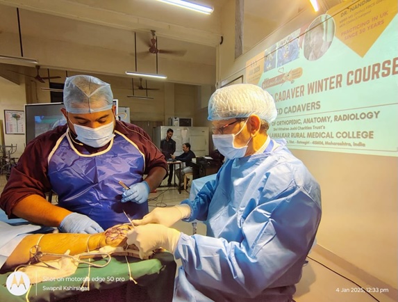 And keeping this important principle in mind Shri. Vithalrao Joshi Charities Trust’s B. K. L. Walawalkar Rural Medical College organized ‘The SVJCT Hand Cadaver Winter Course’ on 04th and 05th January 2025. This initiative was remarkable, designed to deliver advanced education in hand surgery. The workshop provided postgraduate training in Osteopathy, benefiting both trainees and consultants through a collaborative and enriching experience that enhanced their skills and knowledge. The course is led by Dr. Raghunandan Kanvinde, who possesses around 35 years of experience in England. Dr. Kanvinde is an Orthopedic and Upper Limb Hand Surgeon, holding the qualifications of MS (Orthopedics), FRCS, and MCh (Orthopedics) from the UK. He now frequently visits Dervan on weekends to share his expertise with patients.