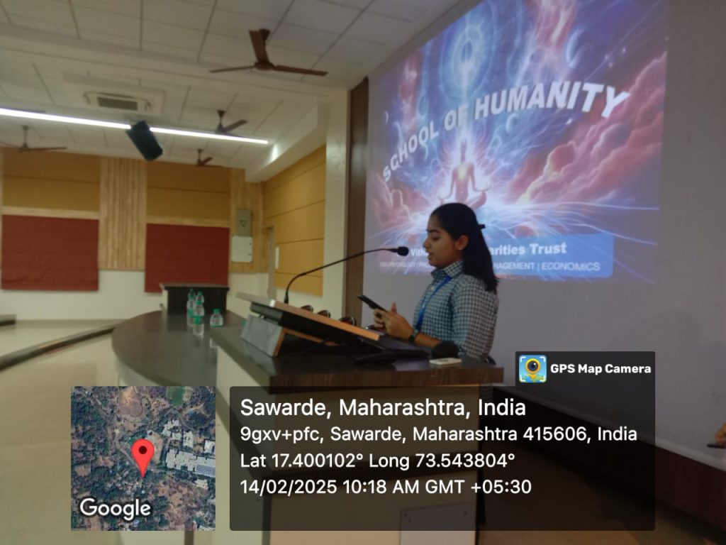 Dr. Suvarna Patil delivered a comprehensive presentation covering diverse disciplines such as psychology, yoga, philosophy, business management, and economics. She highlighted their interconnectedness and practical applications, emphasizing how the School of Humanity aims to promote holistic development and knowledge integration. Her insights on values, personal growth, and emotional well-being left a deep impact on the audience.