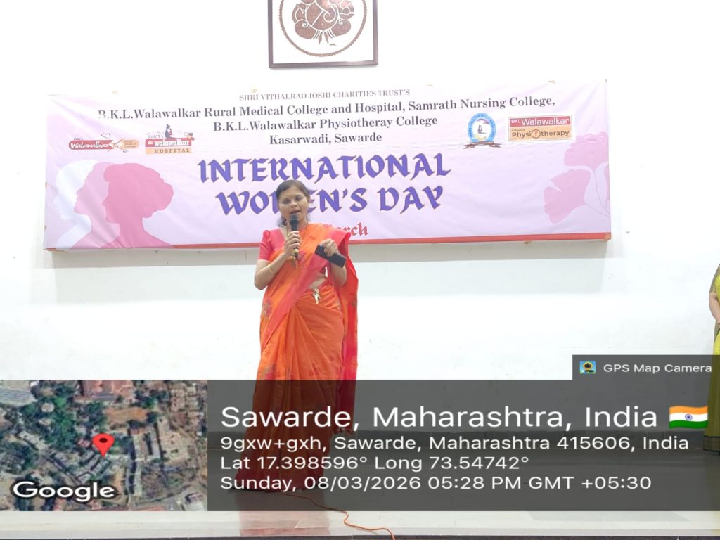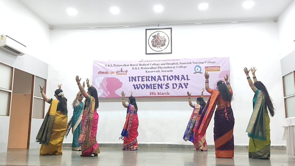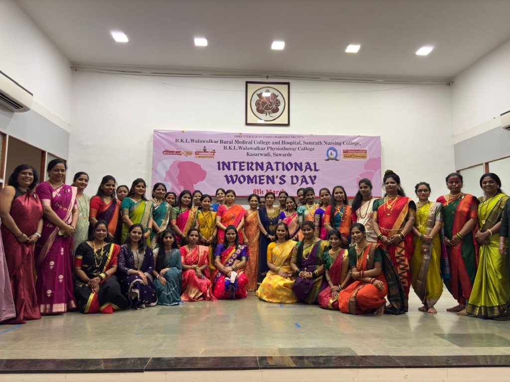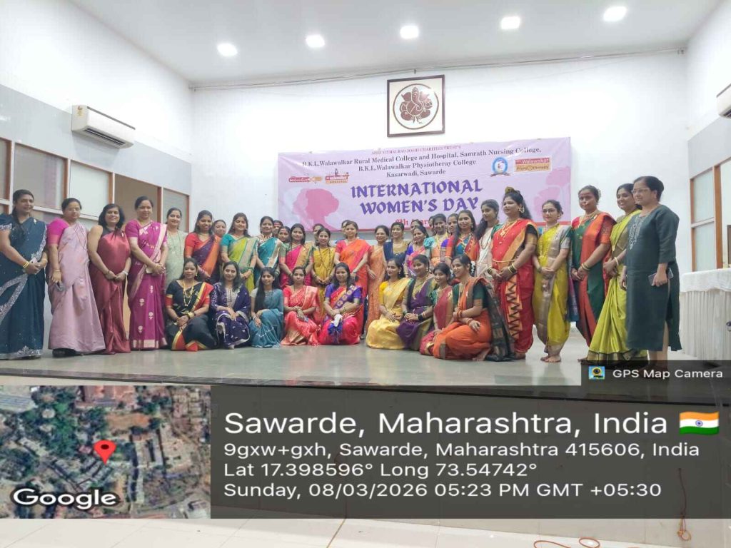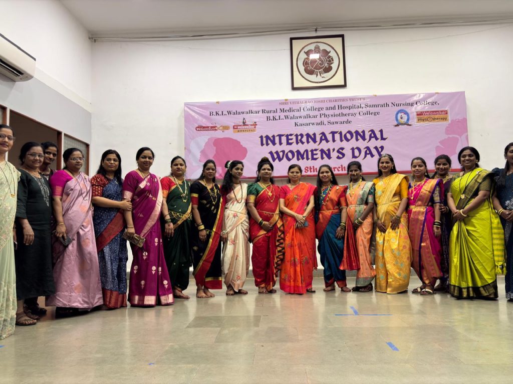 B.K.L. Walawalkar Rural Medical College & Hospital celebrated International Women’s Day 2026 with great enthusiasm through a two-day programme held on 7th and 8th March. The event was organized to recognize and appreciate the valuable contributions, talents, and achievements of female staff from medical, nursing, and paramedical departments. The celebration focused on empowerment, recognition, and creativity, offering a vibrant platform for women employees to showcase their diverse talents beyond their professional roles. On Day 1, a unique food stall titled “Khamang Katta” (Food Stall / Chat Corner) was organized, where female staff presented a variety of homemade dishes and snacks. The initiative highlighted their culinary skills while fostering team bonding, creativity, and informal interaction among colleagues. Day 2 featured a cultural programme titled “Kshan Sukhache (Moments of Happiness)”, which included engaging performances such as singing, dance, poetry recitation, and a special Navadurga Fashion Show, symbolizing strength, courage, and wisdom of women. The performances reflected confidence, creativity, and unity among participants. The programme was centered around the theme “Give to Gain,” emphasizing the importance of appreciation, encouragement, and collective empowerment. A thoughtful gift exchange activity further promoted self-appreciation and mutual respect among the participants. The event successfully showcased the hidden talents of female staff, strengthened interdepartmental bonding, and boosted confidence and morale. It also reinforced the institution’s commitment to gender equality and an inclusive work culture. The organizing committee expressed heartfelt gratitude to the administration for their support and to all participants and departments for making the celebration a grand success.