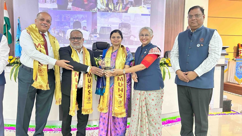 While interacting directly with the students, the Vice Chancellor informed them about the various initiatives being taken by the university to enhance the quality of education. She mentioned scholarship schemes like ‘Earn and Learn’, ‘Savitribai Phule Yojana’, ‘Mahatma Phule Yojana’, and appealed to the students to take advantage of these opportunities. She also explained that “it is necessary to be a good human being, to become a good doctor.”