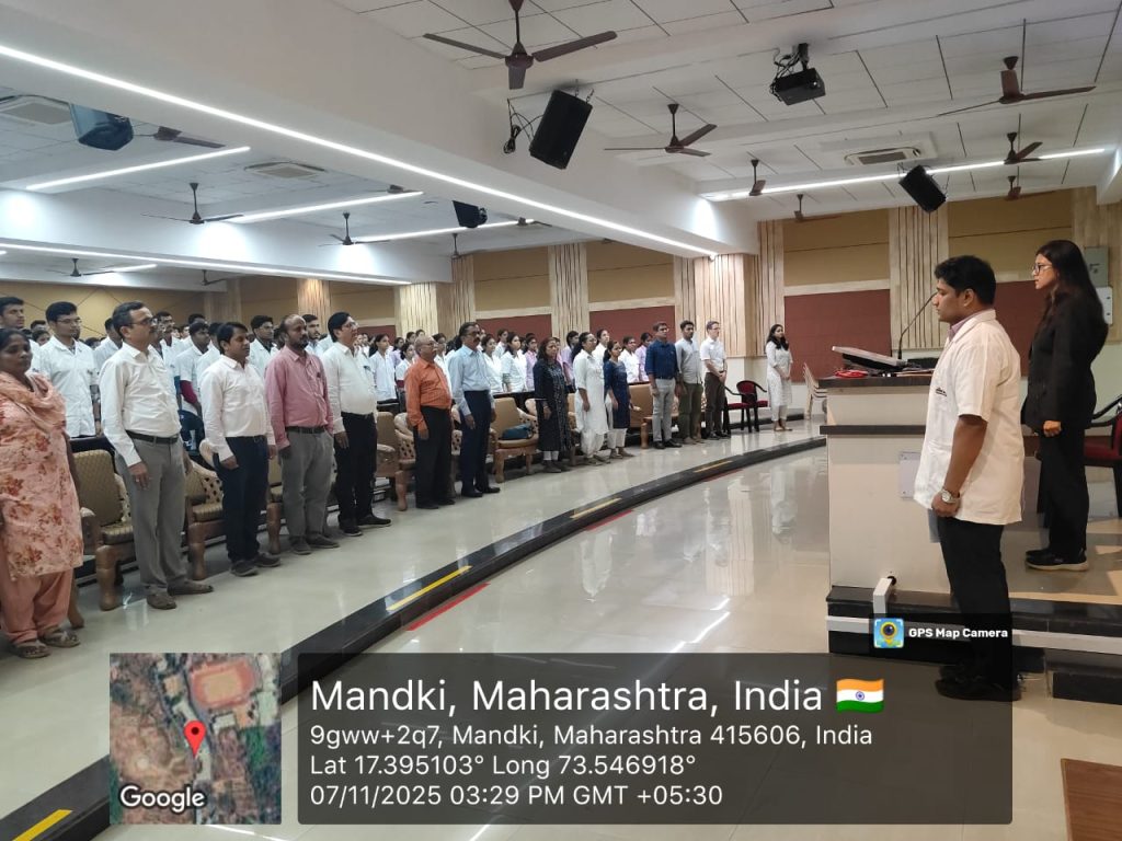 The NSS Unit of BKL Walawalkar Rural Medical College organized a meaningful and inspiring programme on 07 November 2025 to commemorate National Cancer Awareness Day along with the 150th anniversary of Vande Mataram. The event aimed to promote cancer awareness, encourage preventive healthcare practices, and celebrate national pride.