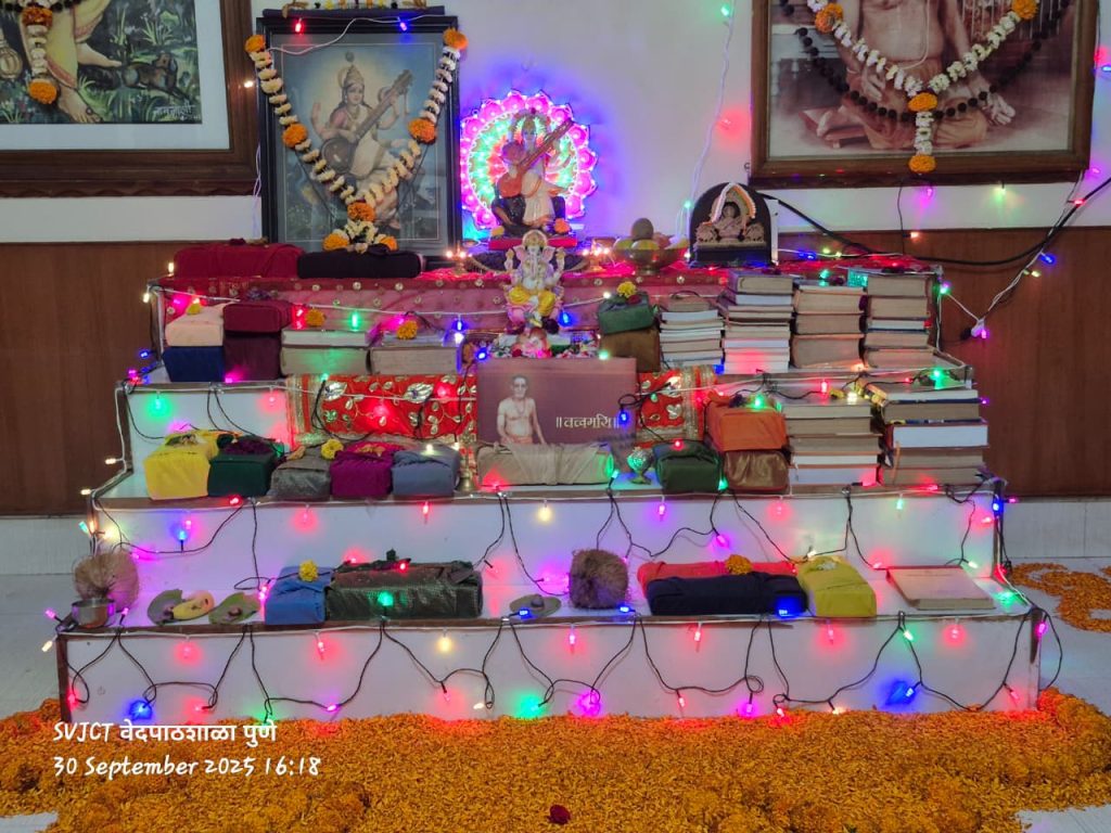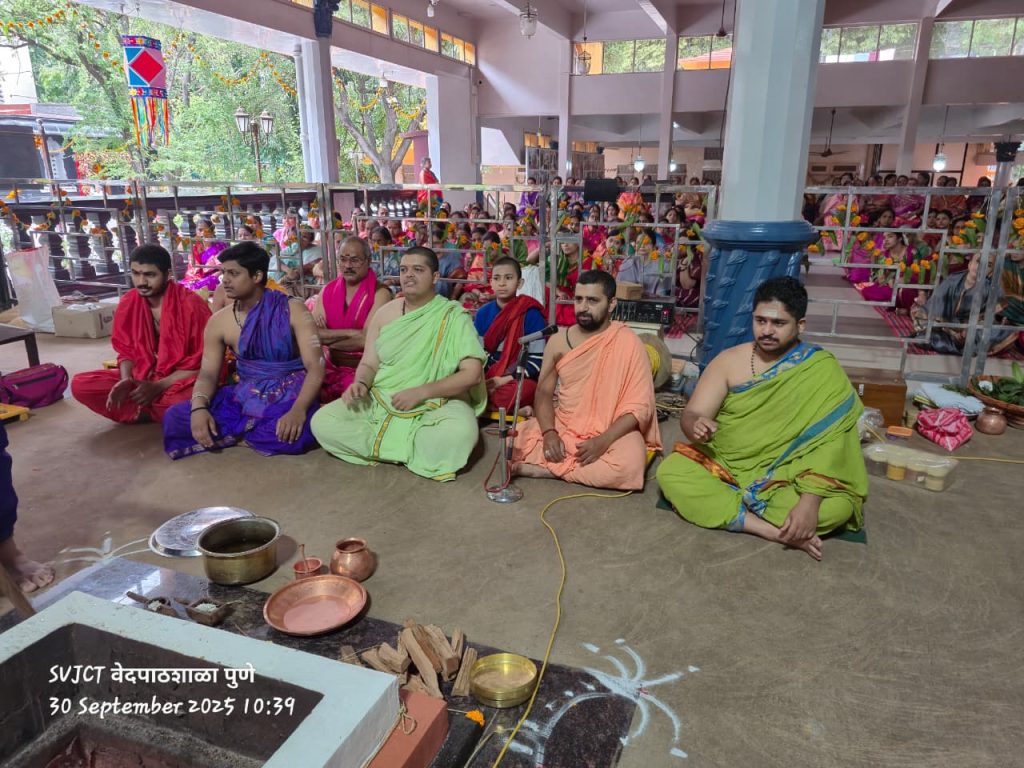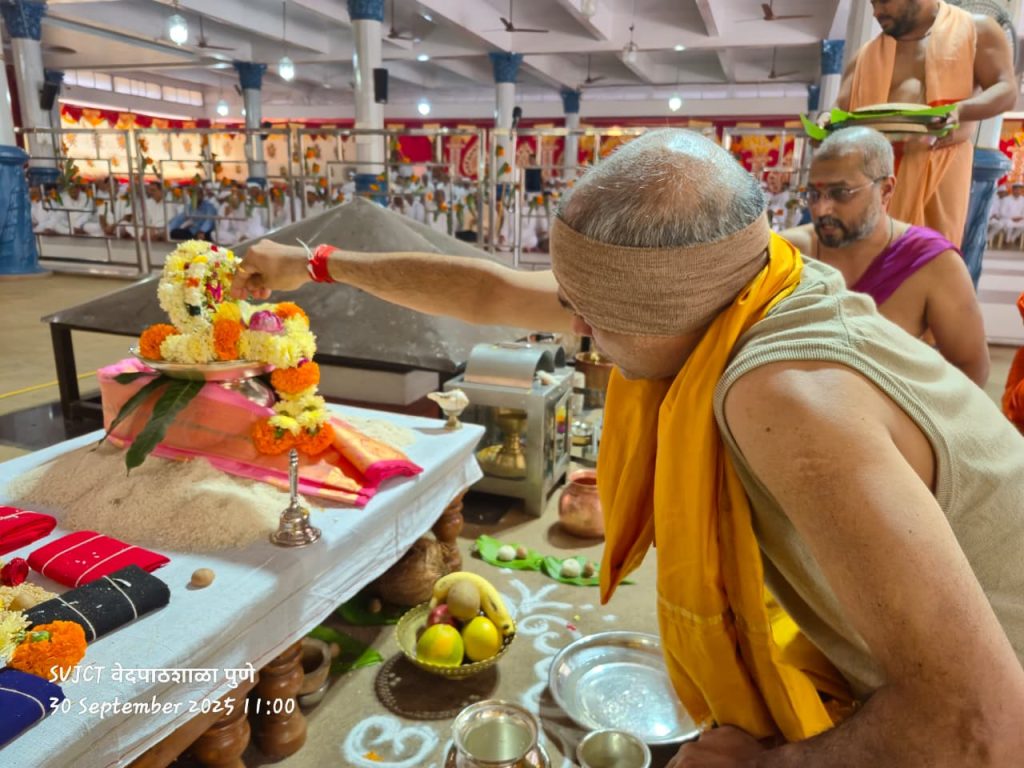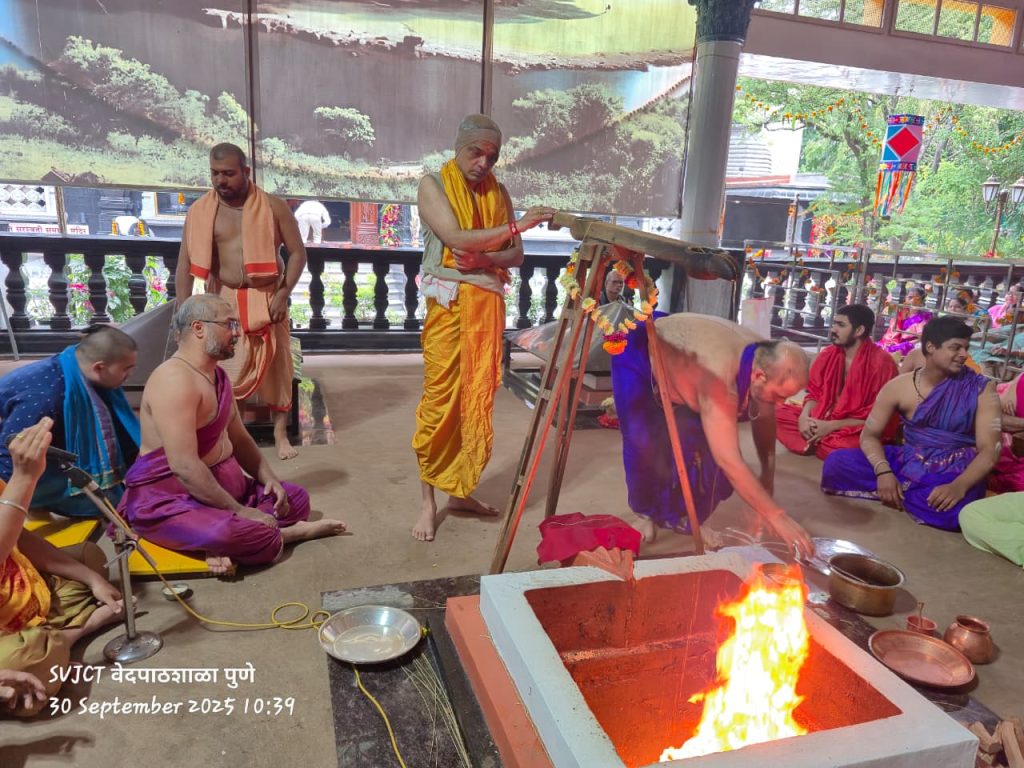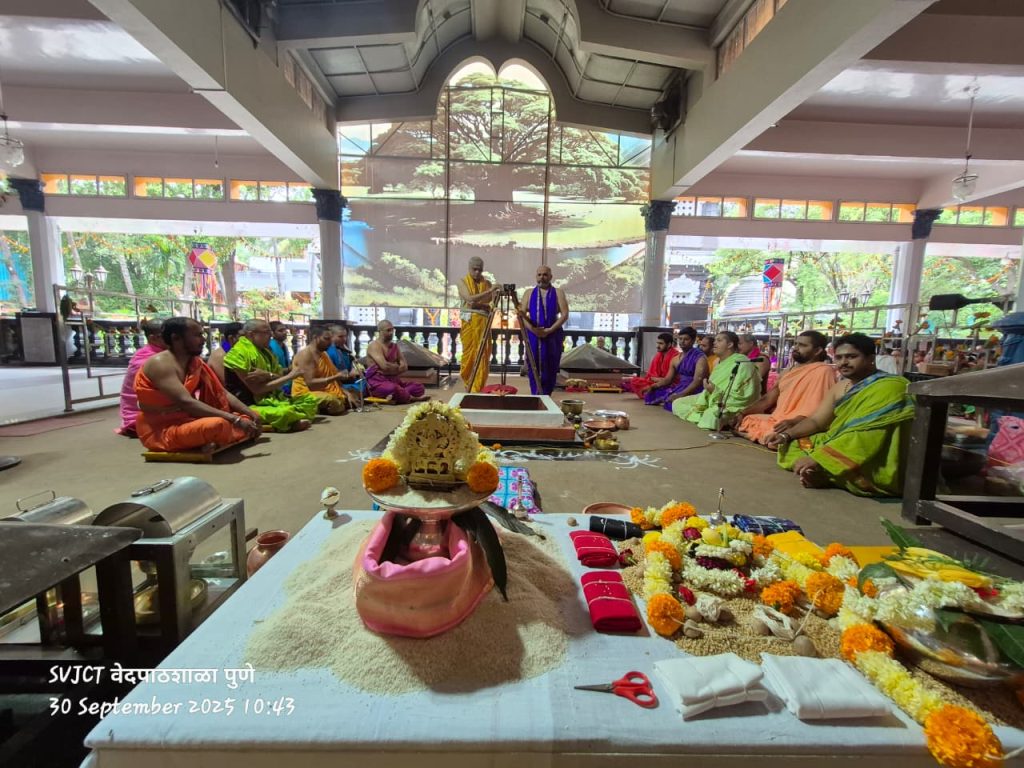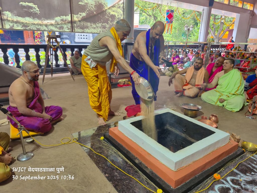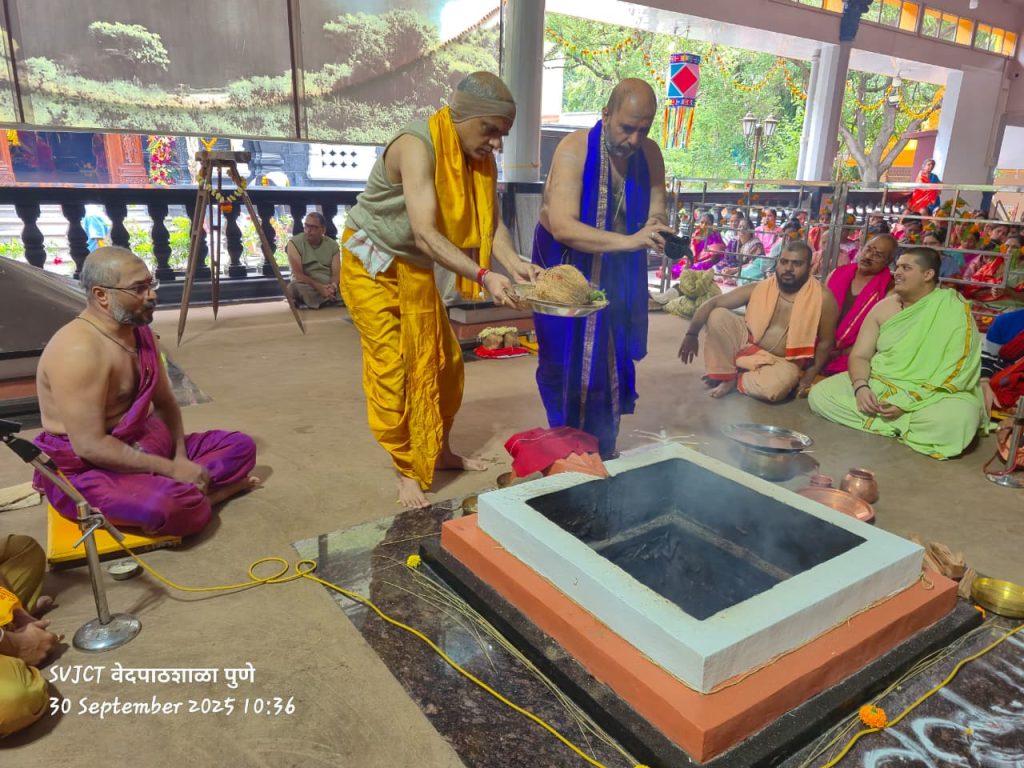 Glimpses from the Purnahuti ceremony of Shatachandi and Navachandi Yajna, organized at Shri Sadguru Vasudevanant Saraswati Veda Pathashala on the occasion of Sharadiya Navratri Festival and Sahajananda Saraswati Jayanti.