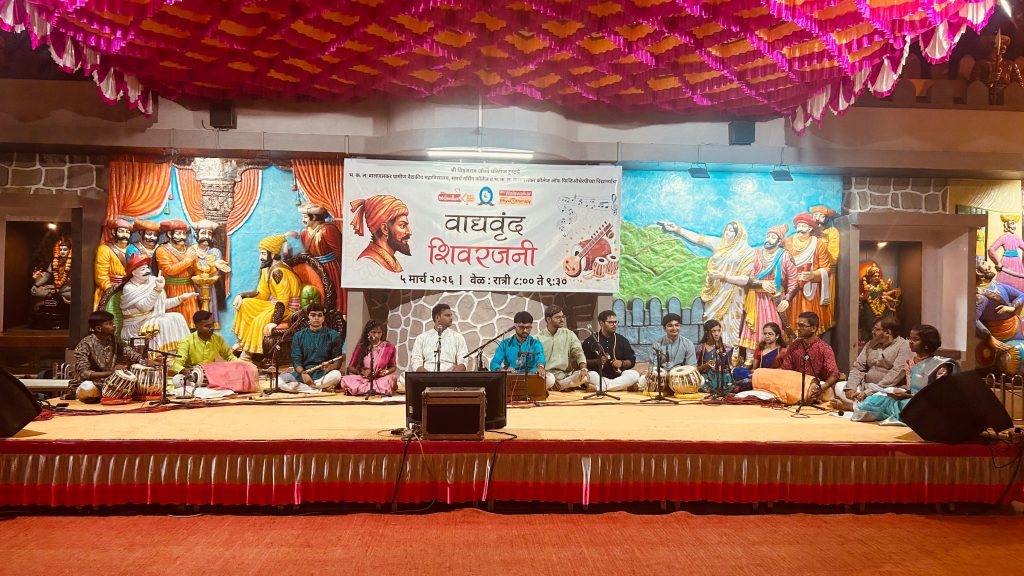 Inspired by the teachings of revered Shri. Kaka Maharaj, and conceptualized by Dr. Suvarna Patil (Medical Director, Bhaktashreshtha Kamalakarpant Laxmanrao Walawalkar Rural Medical College and Hospital) and Dr. Netaji Patil, the foundation stone for the student orchestra “Shivarjani” was laid at ShivSamartha Gad three years ago. This group has since built a strong tradition of captivating audiences with diverse musical performances each year. On the eve of Chhatrapati Shivaji Maharaj Jayanti (as per the Hindu lunar calendar), March 5, 2026, from 8:00 PM to 9:30 PM, the orchestra showcased its experimental versatility in a memorable program.