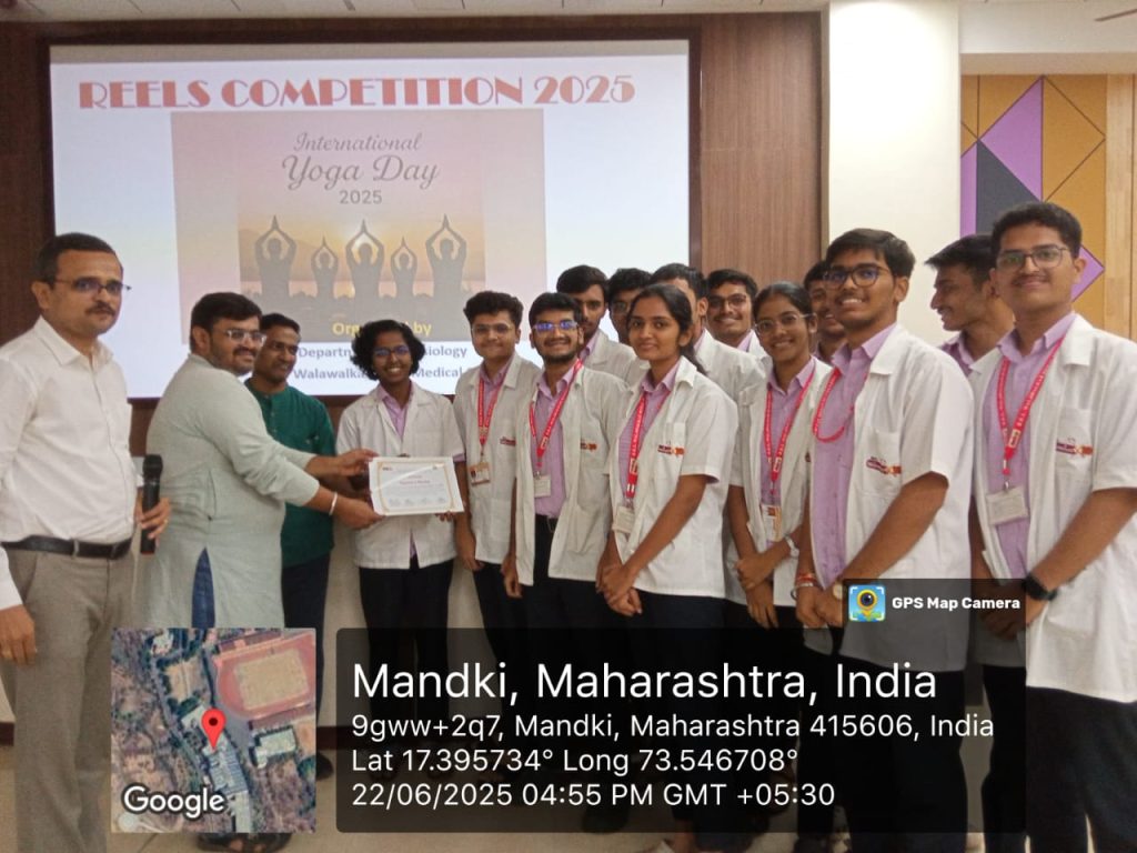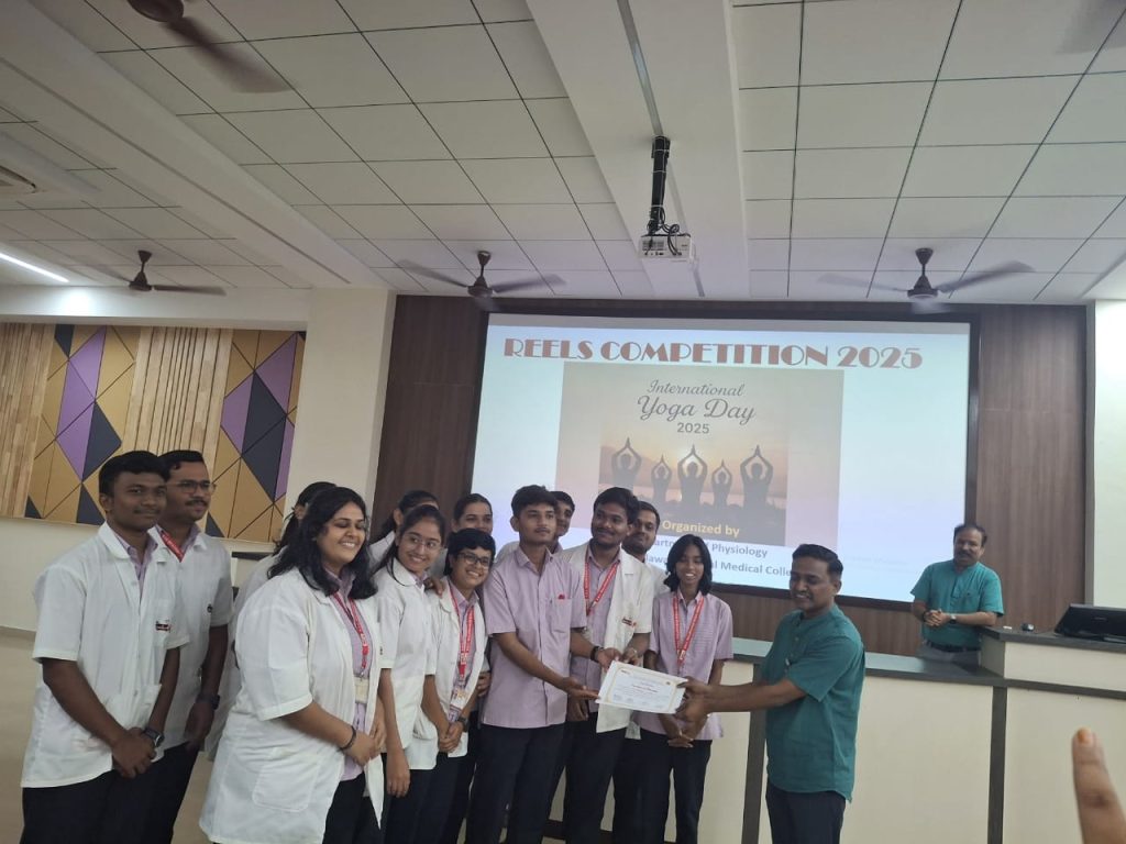 To commemorate the occasion and engage students creatively, a Reels Competition on the theme “Yog in Health and Disease” was organized in the afternoon session. Students participated enthusiastically, and the winners were awarded certificates in recognition of their efforts.