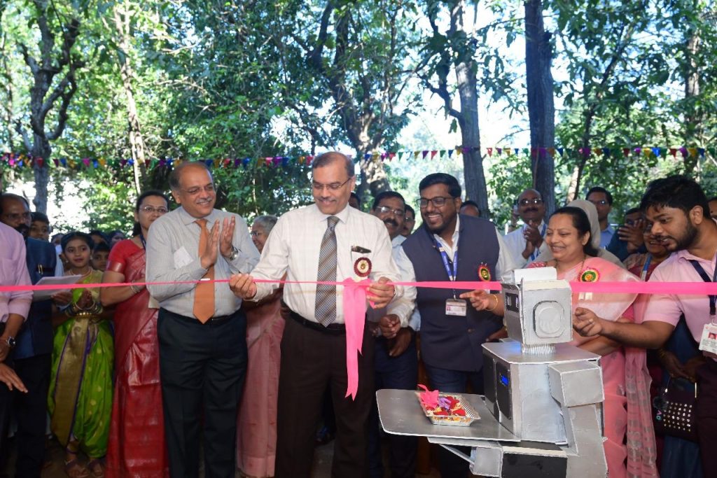 The inauguration was highly impressive and innovative. A robot brought the scissors for ribbon cutting, and with the press of a button, a satellite launcher took flight, marking the formal inauguration of the science exhibition. The exhibition was inaugurated by the renowned oncologist Dr. Shripad Banavali from Tata Memorial Hospital, Mumbai. While addressing the students, he emphasized the importance of observation and questioning, and guided them on scientific innovation, research, and the application of science for the welfare of society.
