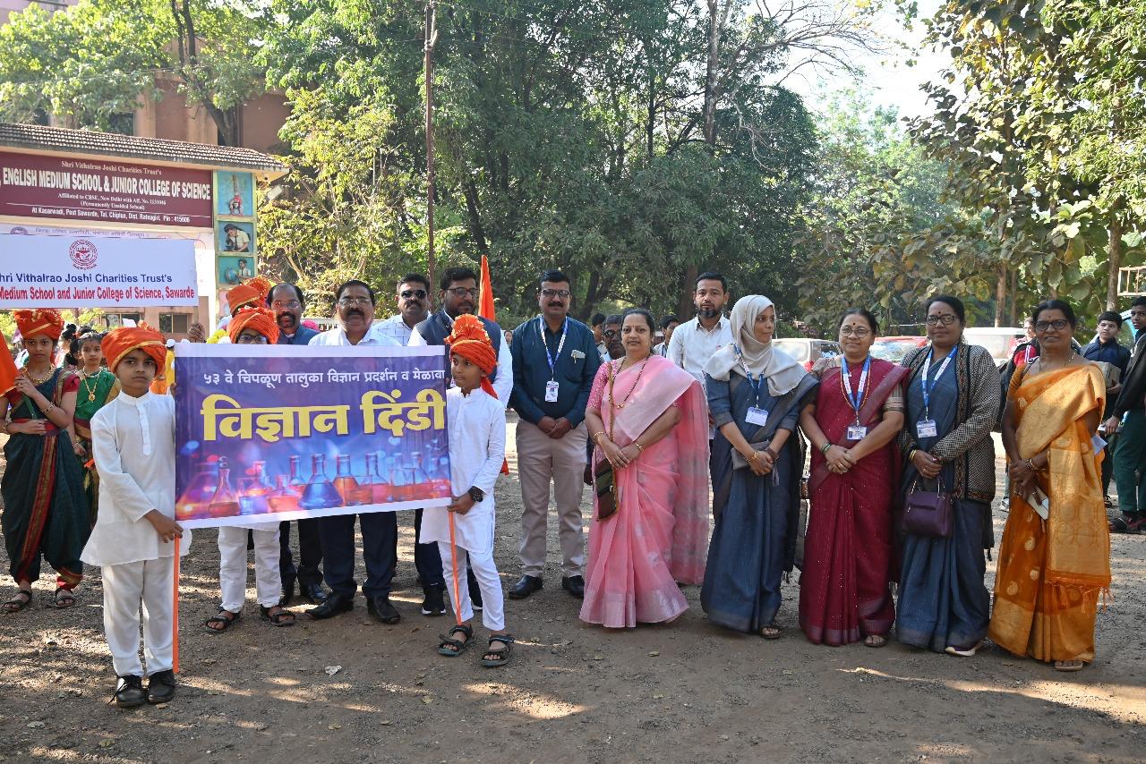 Zilla Parishad Ratnagiri Panchayat Samiti Chiplun in collaboration with Shri Vithalrao Joshi Charities Trust successfully conducted 53rd Chiplun Taluka-Level Science Exhibition and Fair from 10th to 12th December 2025 at Padmabhushan T. Ramasami Vidnyan Nagari, set up at English Medium School and Junior College of Science, Derwan–Sawarde, run by Shri Vithalrao Joshi Charities Trust. The programme commenced with a vibrant Science Dindi (procession).