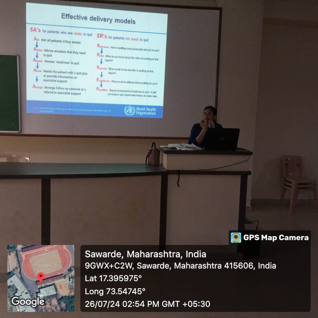 The Department of Psychiatry, B.K.L. Walawalkar Rural Medical College, successfully conducted a two-day workshop on “Brief Tobacco Intervention” to train medical, nursing, and psychology students and staff in providing effective tobacco-cessation counseling to patients.
